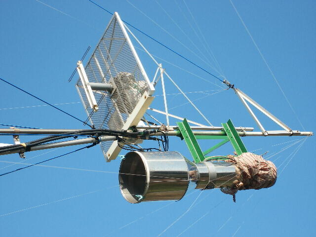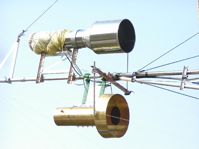 432用 Rotaly dual folded dipole feed と 1296用 W2IMU full size feed を装着したところ。