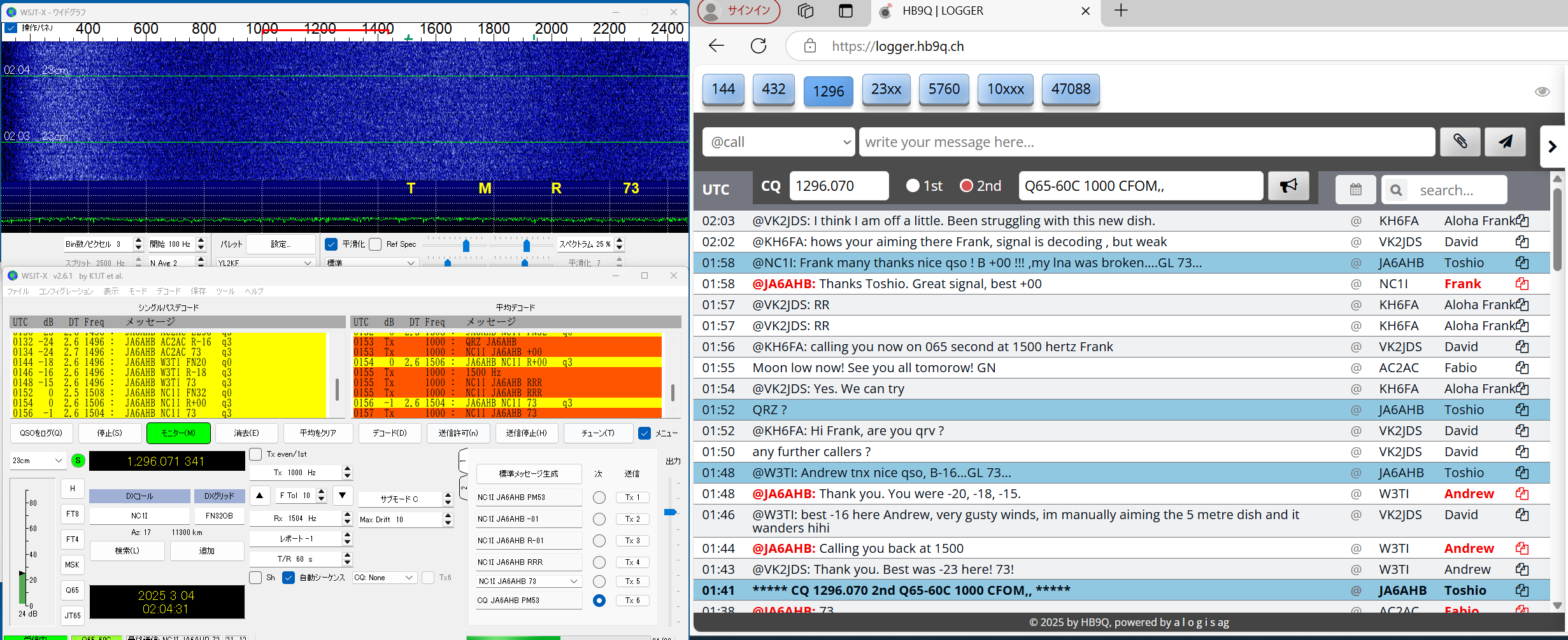 溝口さん(JA4LJB)の情報によると JAの23cmJTマニアの殆どの方が 交信成功!との事で めでたし めでたし。 私は どうしようもない ドコモHome5Gのお守りで 出遅れて殿でした。