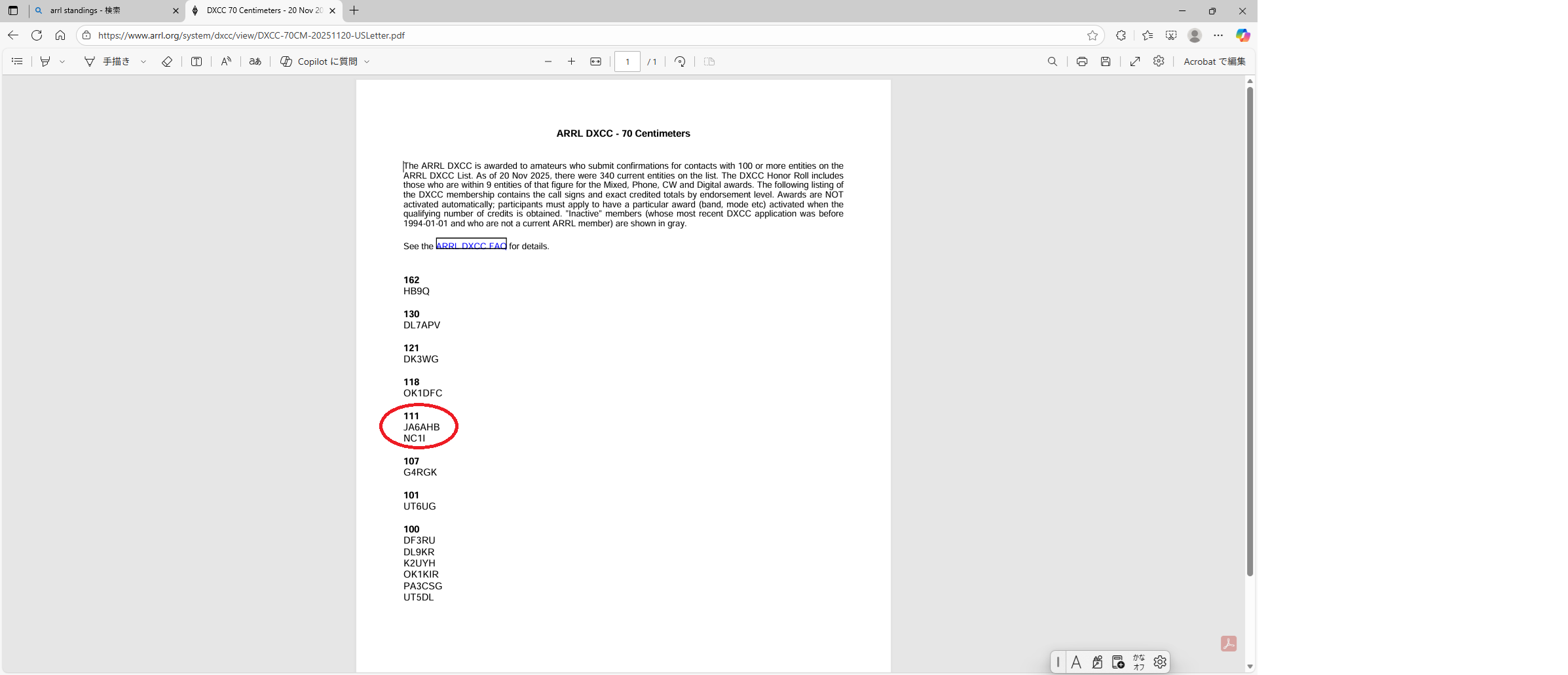 ever 1st in Japan ever 1st in Asia No.11 in the world DXCC 70cm Standings 111 dxcc 70cm standings.png