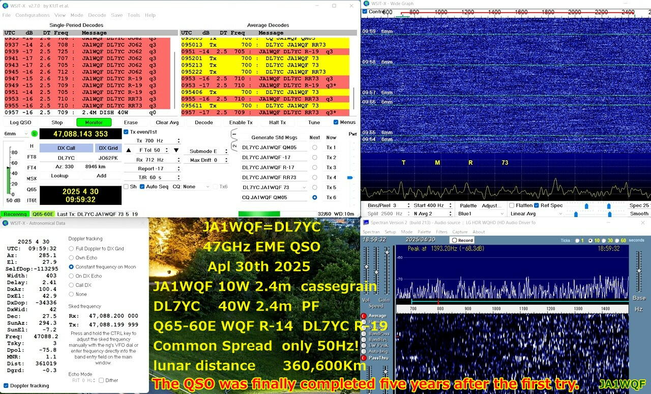 日本の笠井さん 47GHz EME 交信成功!オメデトウ! スバラシイ! 以下2枚 笠井さんからのメール添付