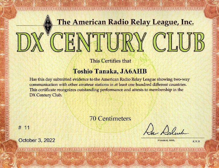 QSLチェッカーさんから 10/3 ARRL受付・DXCCstandingsに記録 ありとメールが入りました。 tnx JA6WJL DXCC-70CM-20221009-A4.pdf (2022.10.09.)