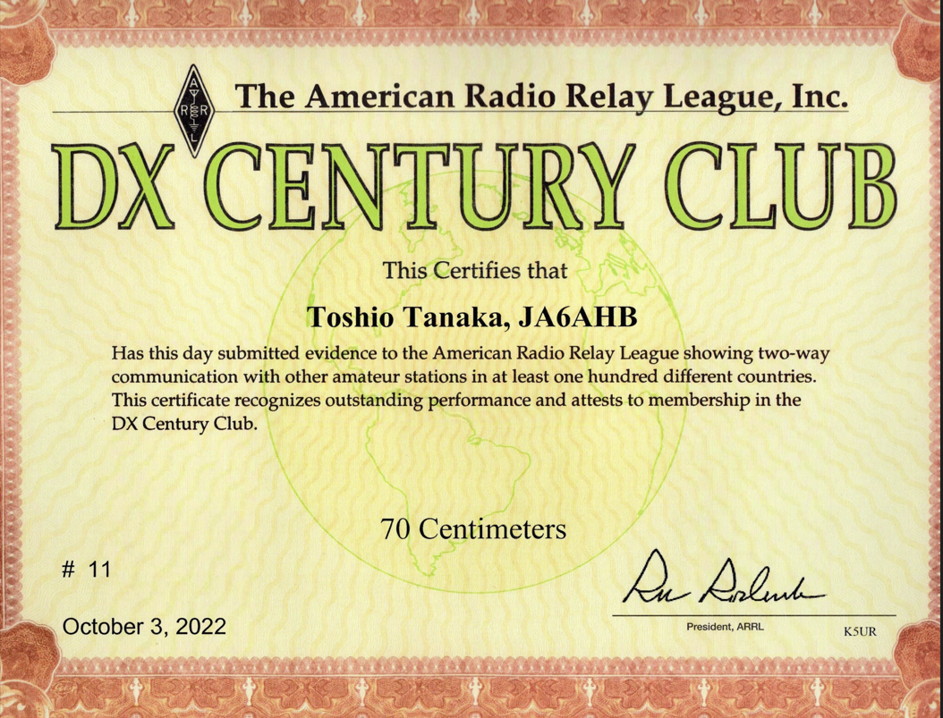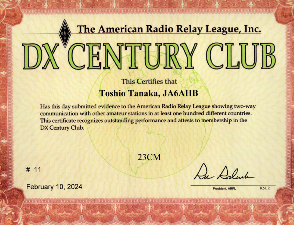 ever 1st in Japan ever 1st in Asia No 11 in the world DXCC 23cm Standings 116 dxcc 23cm standings 116.png Award certificate takara dxcc23cm .png