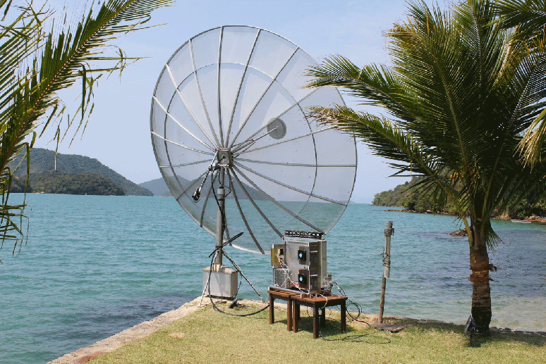 PY1KK 4mφdish Xpol.800W R&S PA near the dish. Bruceは島と島の間の水平線上に月が出る時期にこだわった。 それが11月28日で、彼はこのために4日間の休暇をとりました。