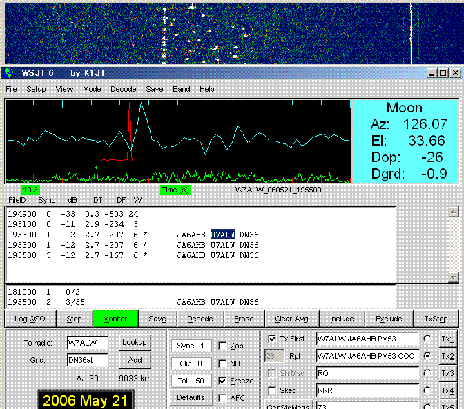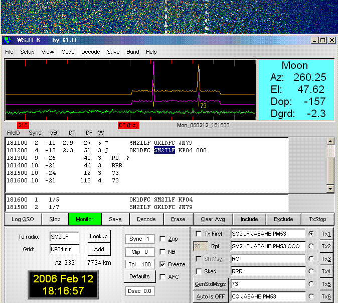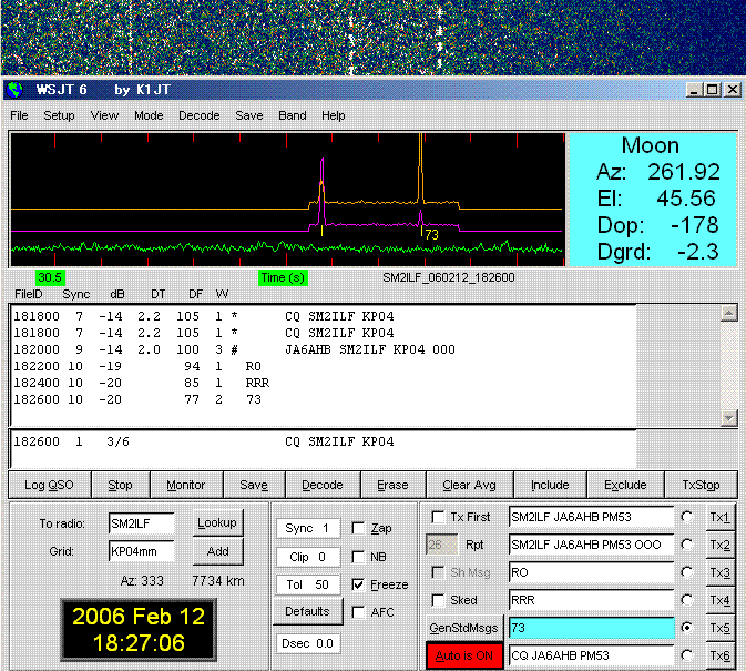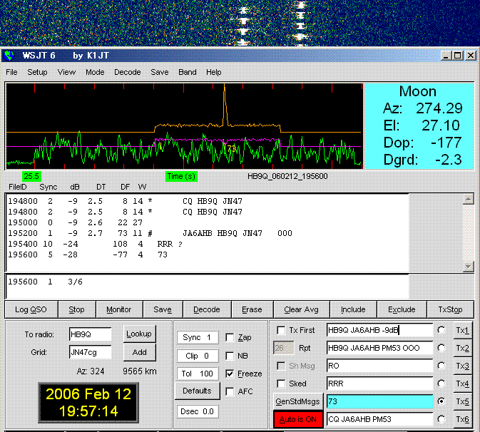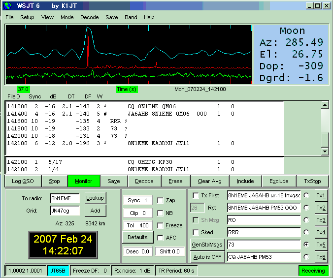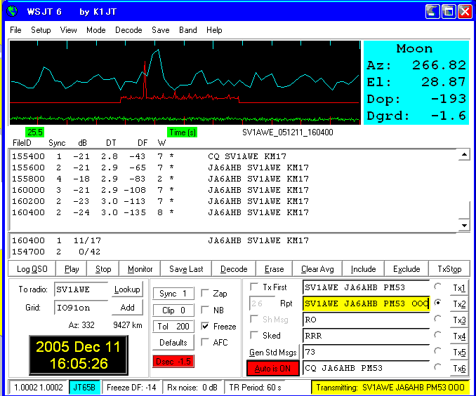 WSJT 6 Ver.5.9.0. Sked on 432.040. (by JT65 EME Link) KE7NR