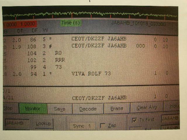この直後、CWでも 559/559 で交信に成功 CWではG3SEK−ZL3AADの18970kmに及ばなかったが 432 WAC EME CW 完成