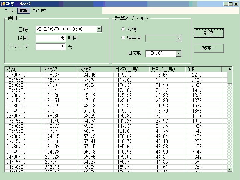 自局の太陽・月のAZ・EL計算結果