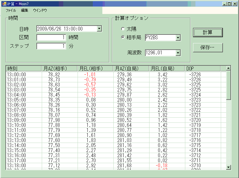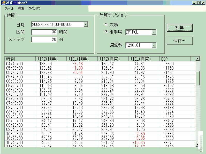 対策として、2008.7.6.まで遡り、「moon 6」のような万年暦的データーを利用することに したい。 現在のmoon7とは13年も昔のデーターだが、比較して見ると、太陽で0.1度 月で0.5度程度の差しかない。13cm以下ではビーム半値幅で十分補える。6cmでは もともとmoon noise手動追尾であるから これも最初の大体の位置がつかめればよい。 (2021.11.01.) チト心配になってEXCELさんに計算してもらったところ、その差の平均値は0.2度ほどだが、ピークでは1度を超える。 その時間帯は2時間以内だが、そこに月が 当たるかどうか・・・当たってもUHFのビーム幅を考えれば問題は無い。 (2021.11.11) moon-6 20211022 diff ne.htm