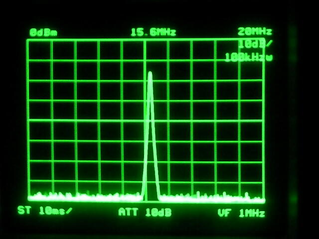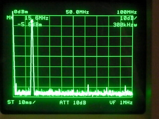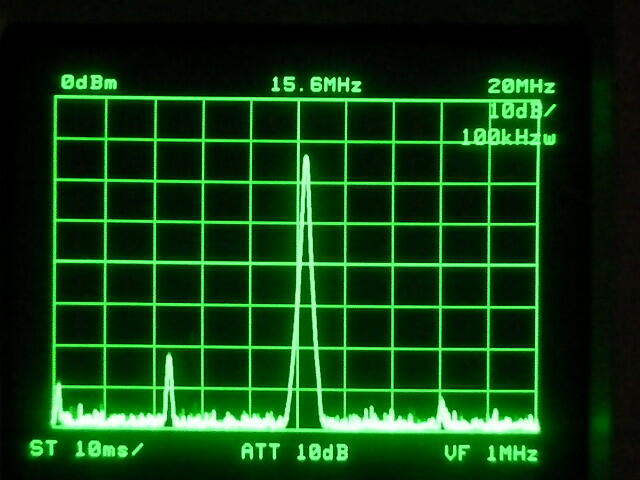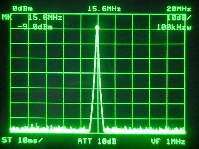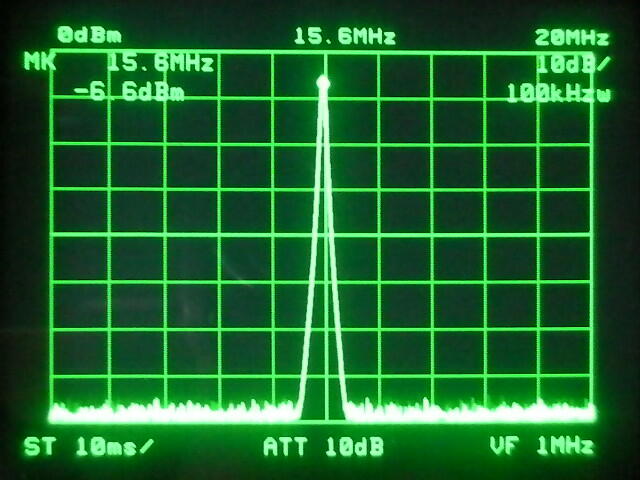 15.6MHz PLL出力 にBPF挿入、 第2高調波は約50dB低下、第3以上と10MHz漏れは見えない。